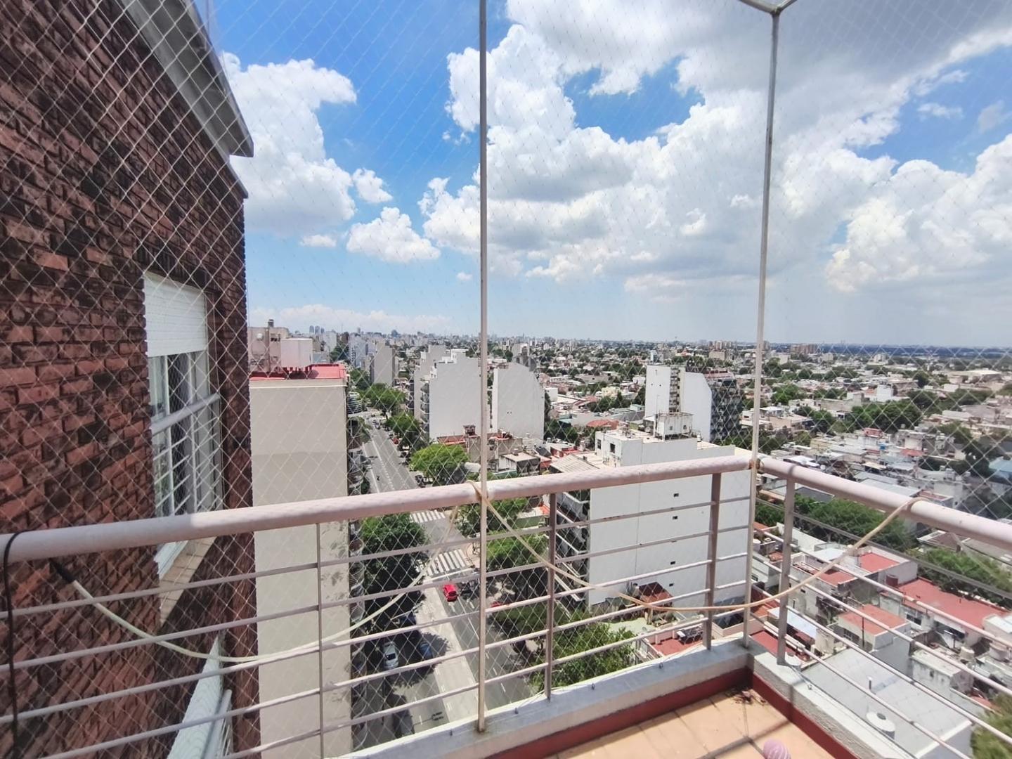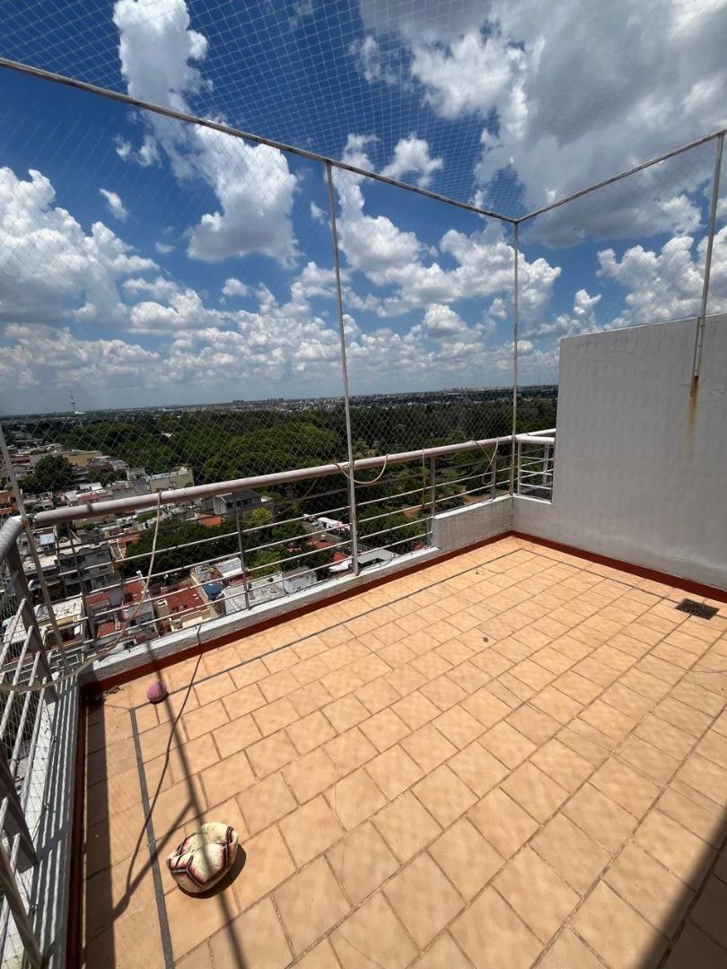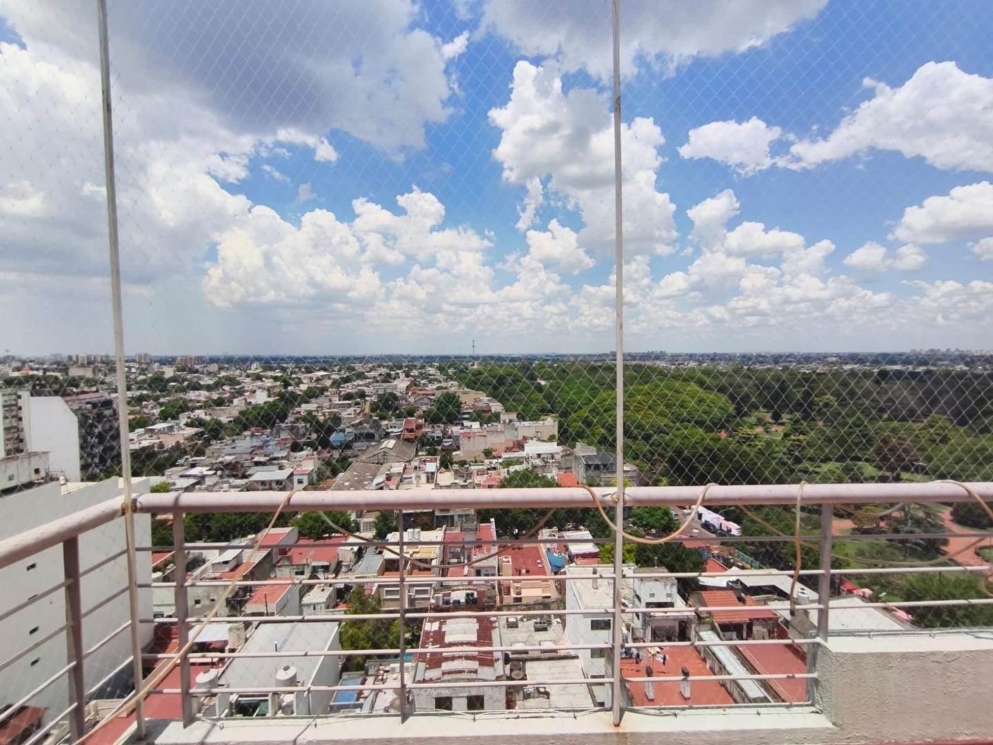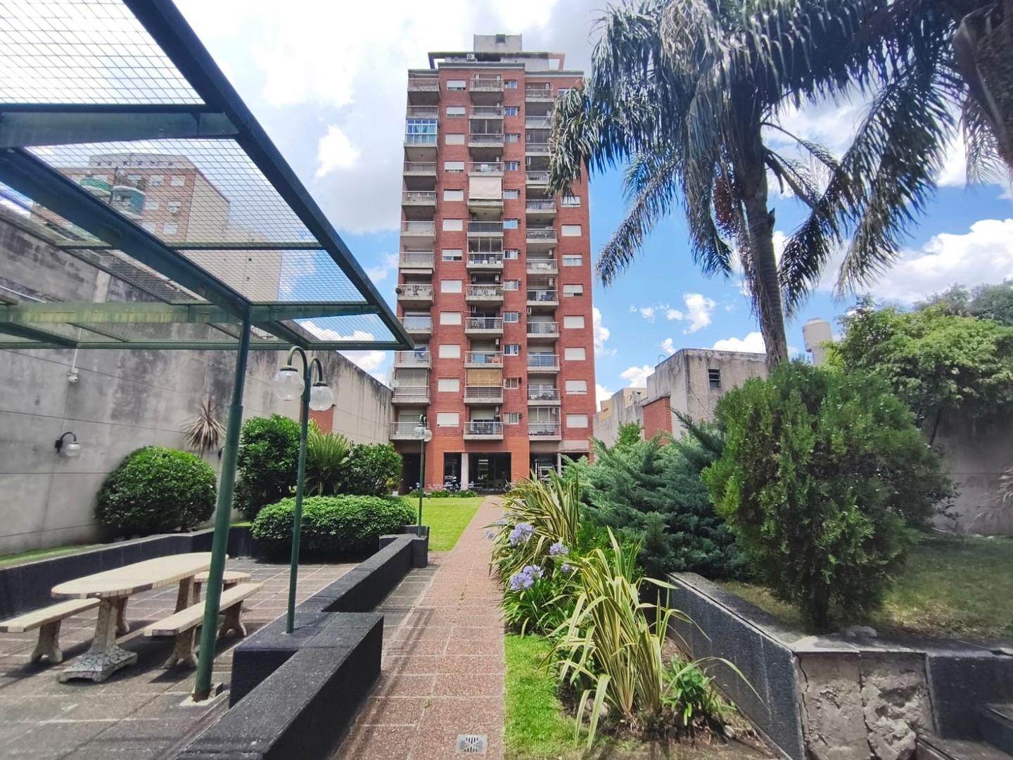 Se trata de un departamento ubicado en el piso 12 al frente, en un edificio de 12 pisos, con cinco departamentos por piso y dos ascensores. Edificio de categoría, cuenta con Encargado permanente, servicio de seguridad nocturna, gran parque trasero con mesas, bancos y parrillas de uso común.