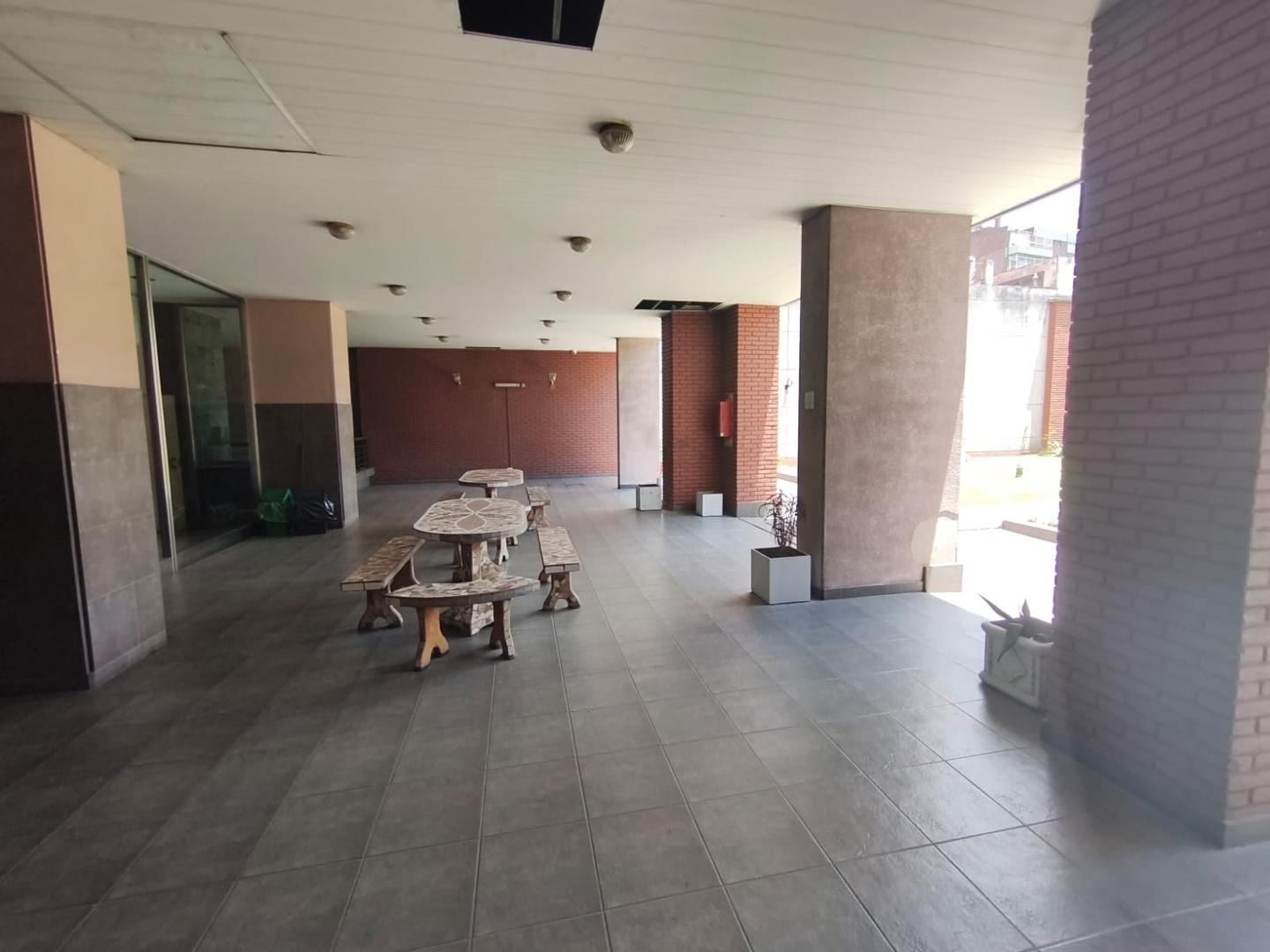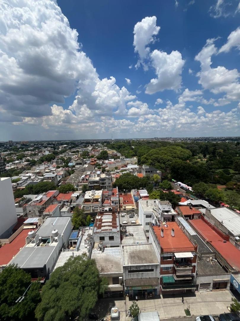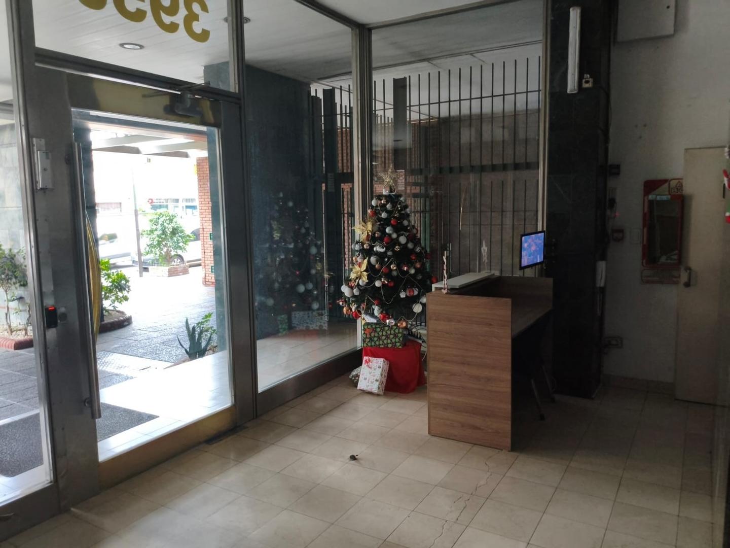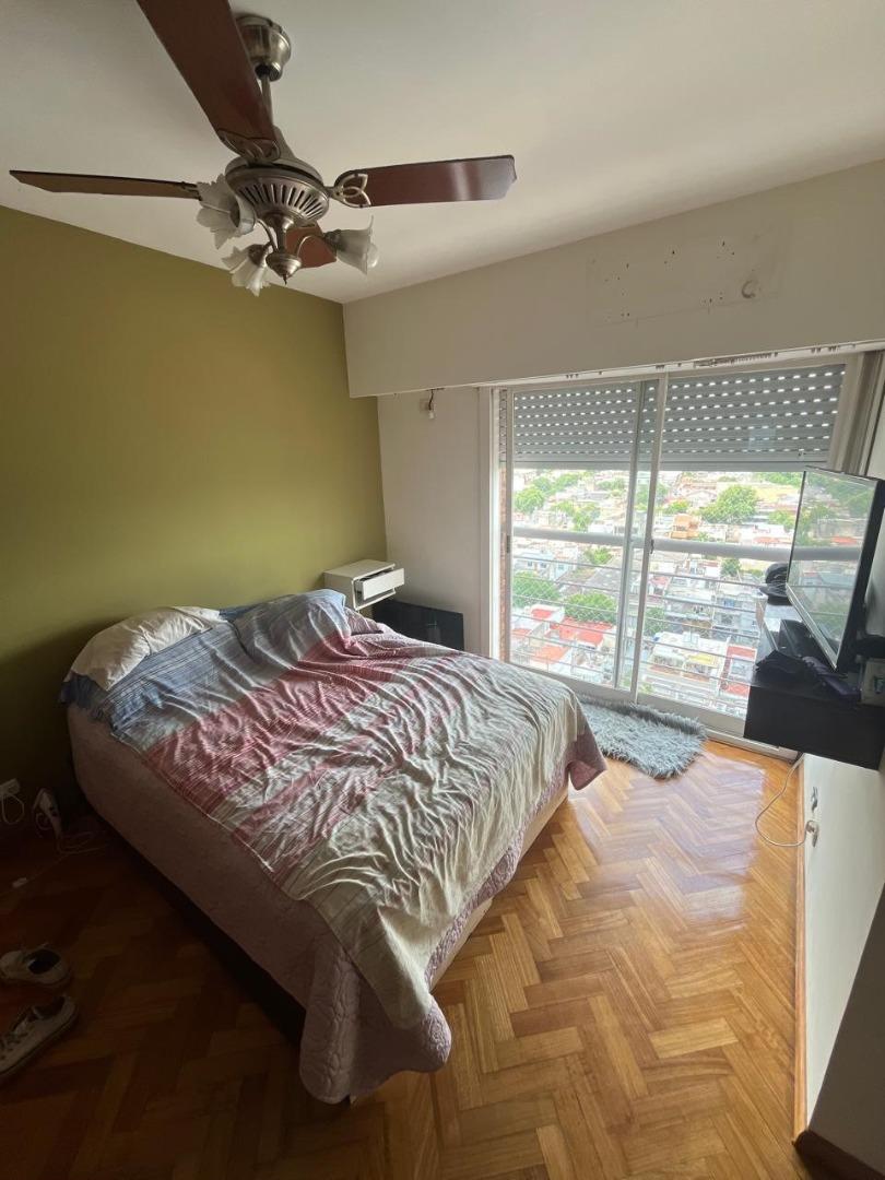 Se trata de un departamento ubicado en el piso 12 al frente, en un edificio de 12 pisos, con cinco departamentos por piso y dos ascensores. Edificio de categoría, cuenta con Encargado permanente, servicio de seguridad nocturna, gran parque trasero con mesas, bancos y parrillas de uso común.