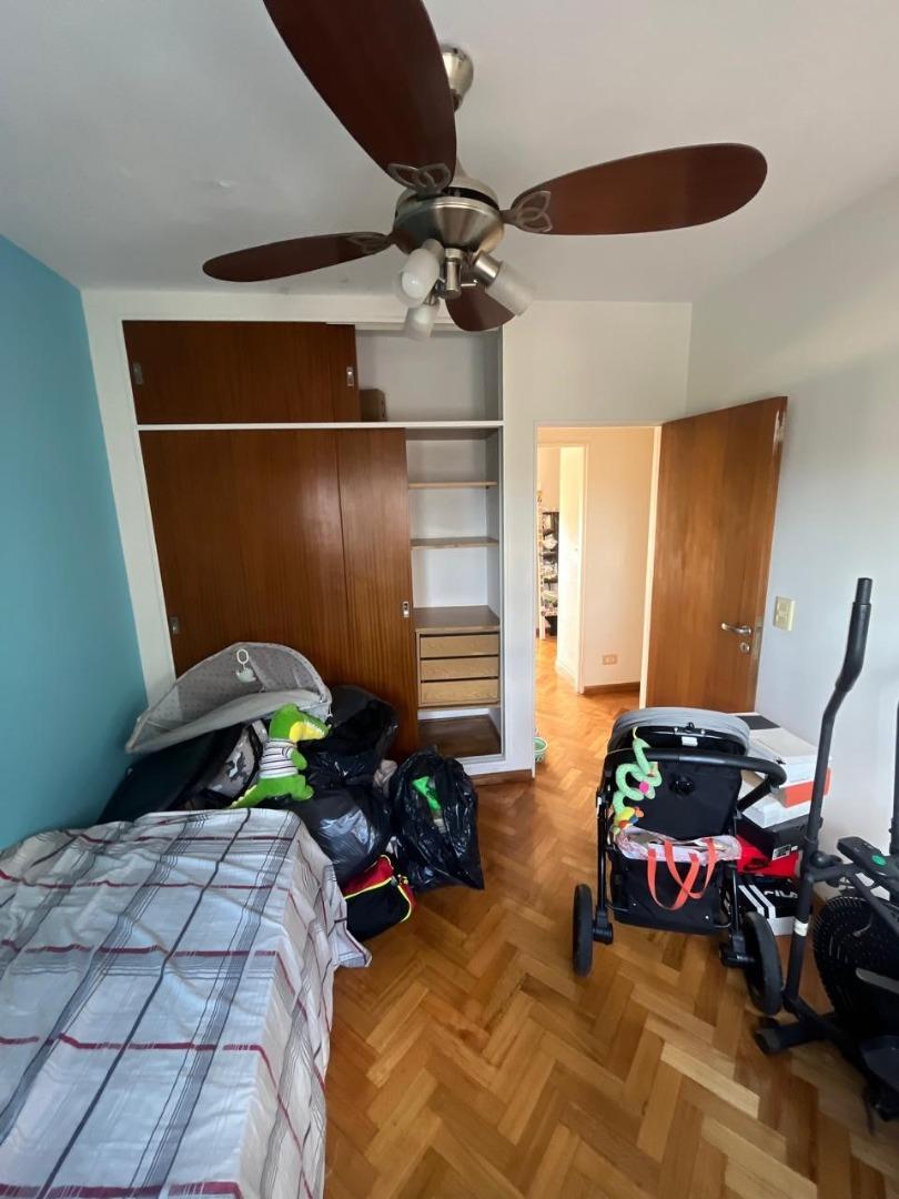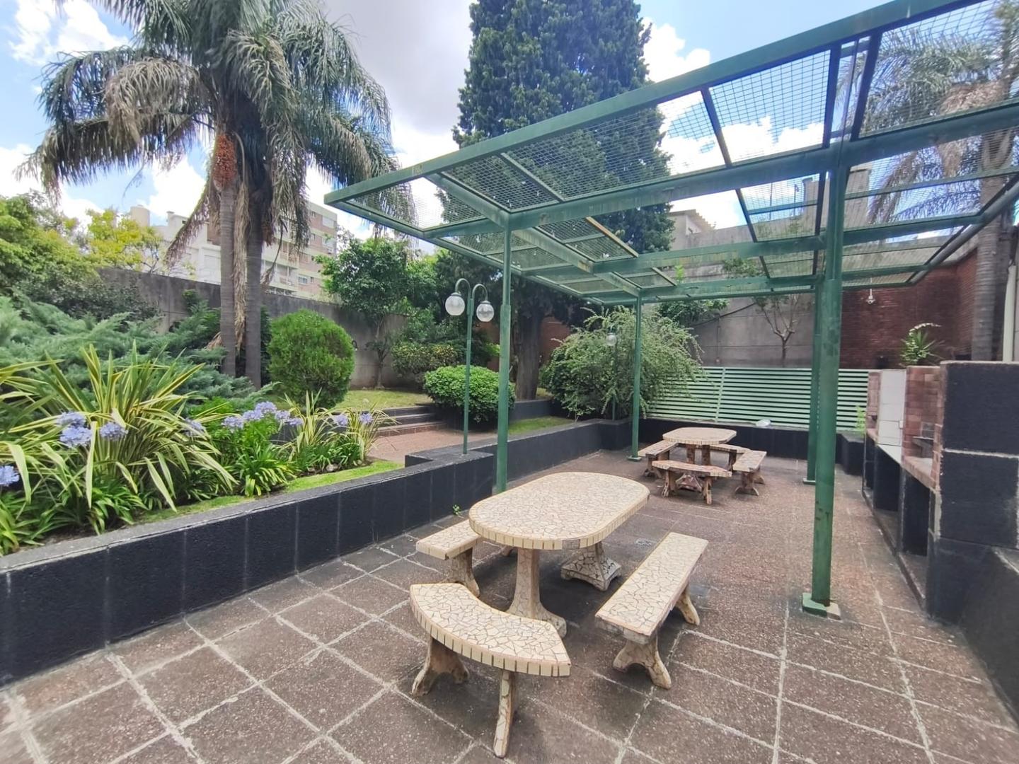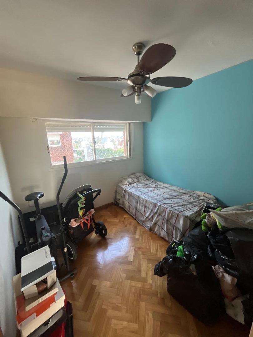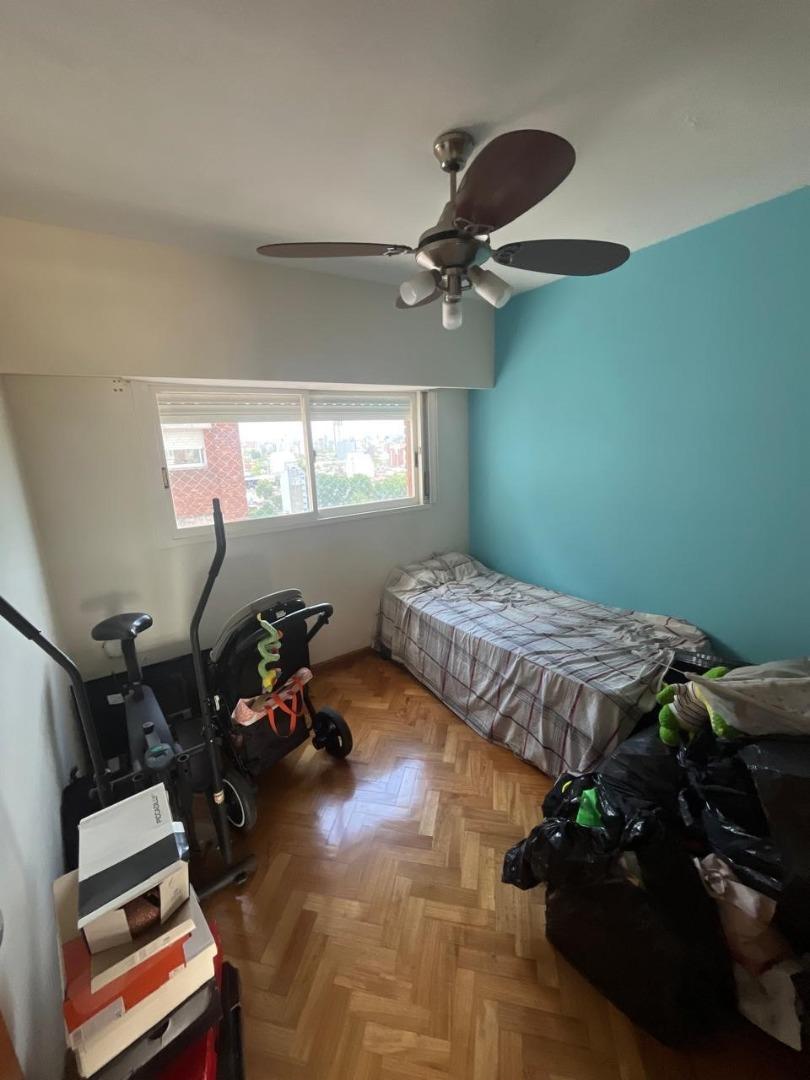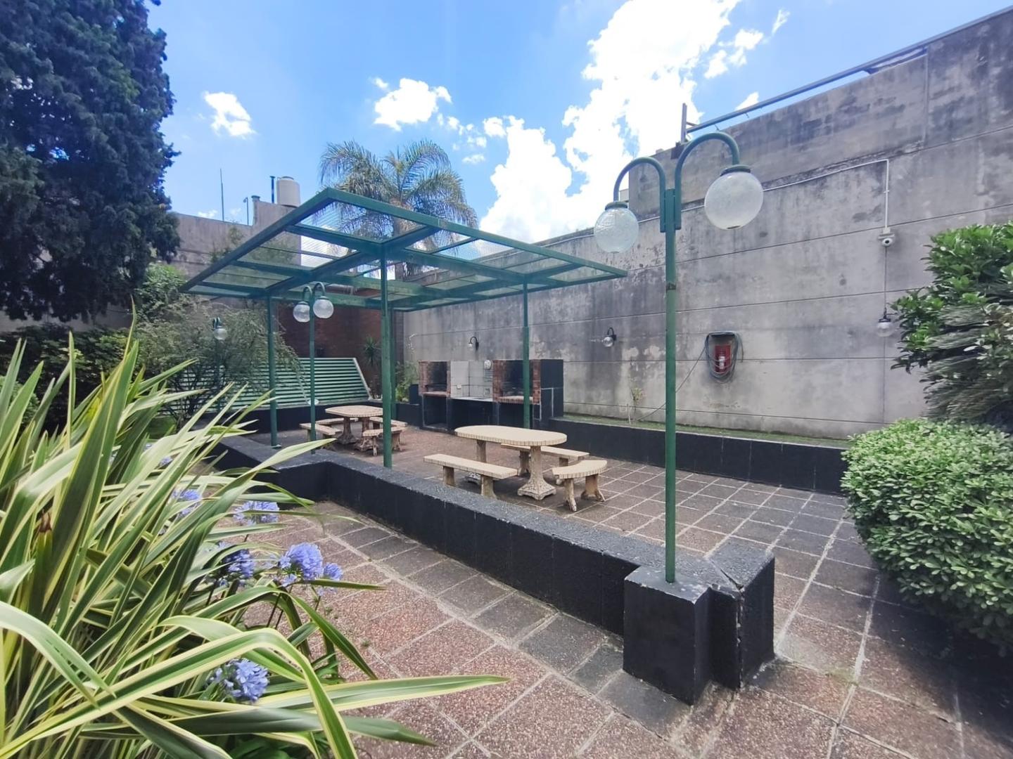 Se trata de un departamento ubicado en el piso 12 al frente, en un edificio de 12 pisos, con cinco departamentos por piso y dos ascensores. Edificio de categoría, cuenta con Encargado permanente, servicio de seguridad nocturna, gran parque trasero con mesas, bancos y parrillas de uso común.