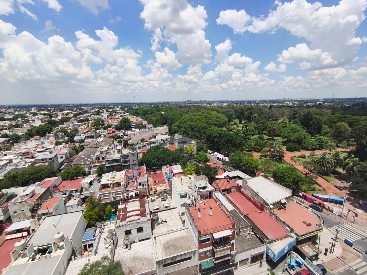 Gran pulmón verde del Parque Avellaneda, mira hacia el frente sobre Av. Directorio.